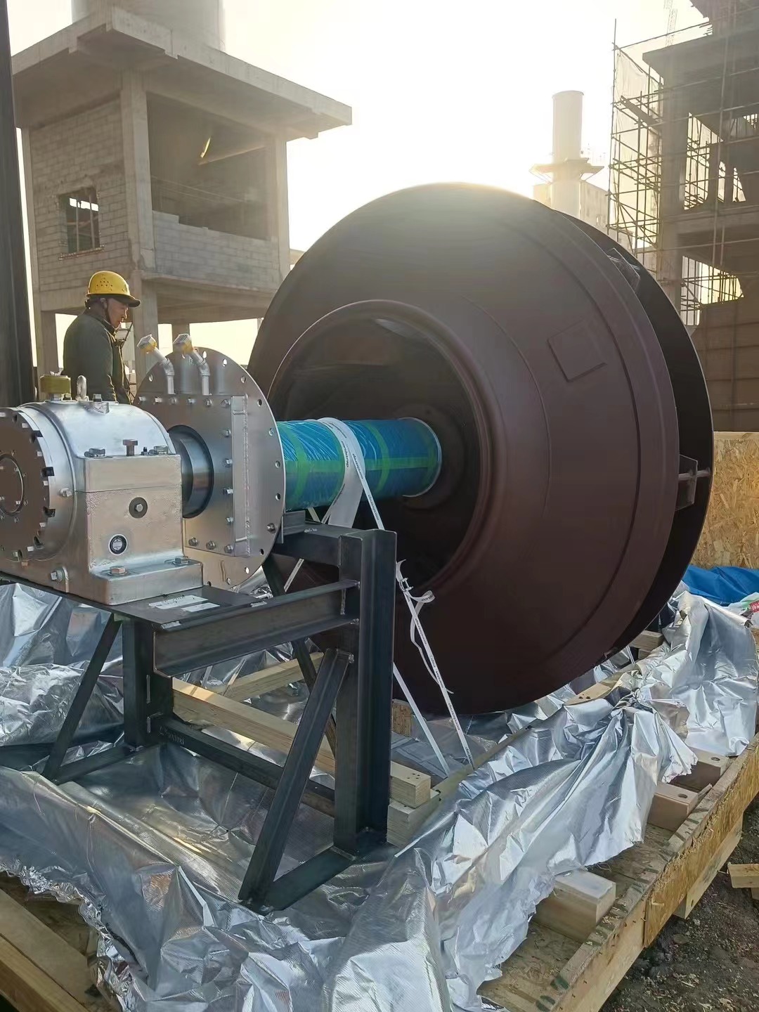 近日,陕西驭腾总包,洛阳龙泽干熄焦循环风机到达施工现场,达铁工作人员检查风机各零部件是否完备,然后开始着手安装。