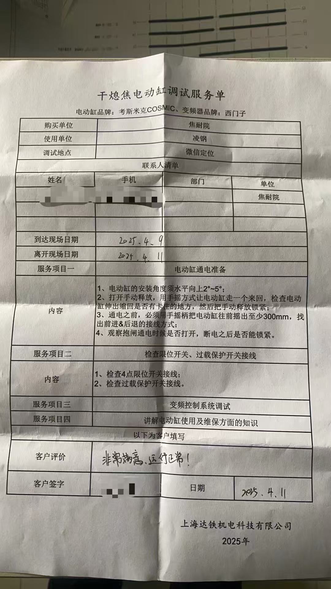 2025.4.11凌钢第三套干熄焦电动缸,成功调试完毕!电动缸品牌:考斯米克COSMIC(含西门子控制系统)、
