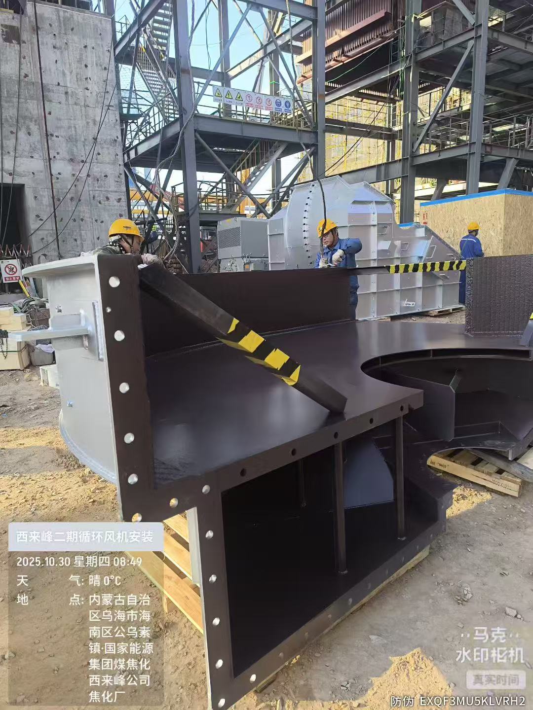 2025.11.1中化十一建总包,国家能源西来峰项目2期干熄焦项目,1号干熄焦循环风机及电机,安装进行中。风机品牌:日本机械NKG节能风机,电机品牌:西门子高压变频电机。