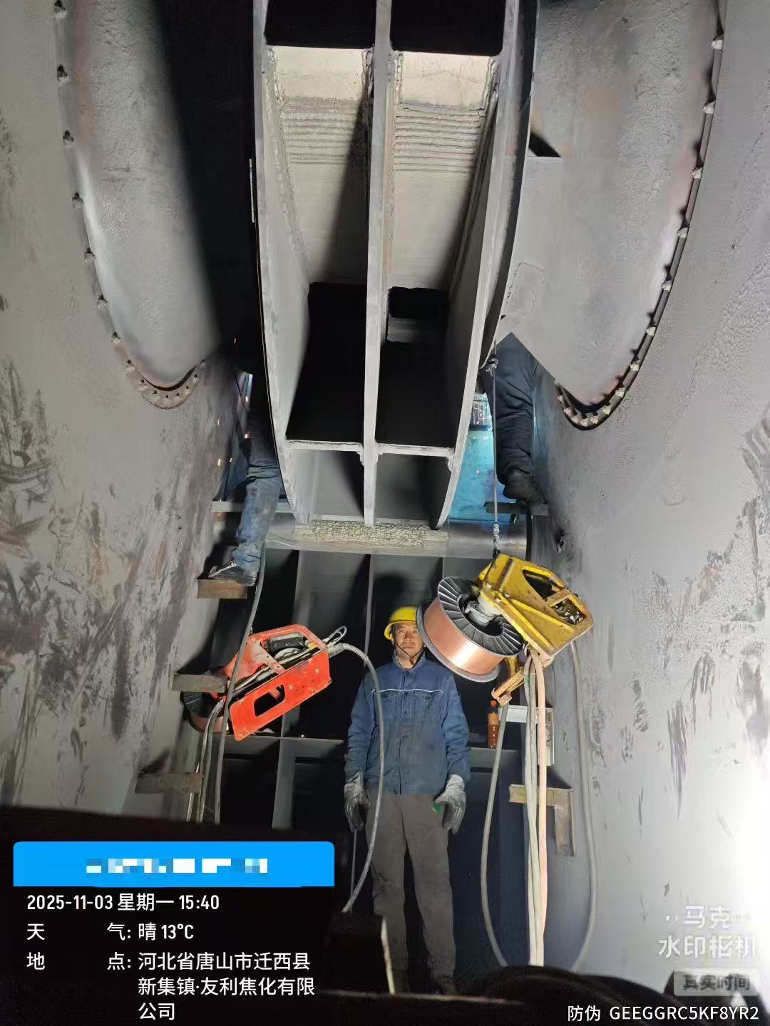 2025.11.3山西某干熄焦和唐山某干熄焦,同时维修德国TLT风机。维修内容全覆盖:外壳补漏(用堆焊耐磨板),叶轮维修(叶片和轮毂加陶瓷耐磨层),在线做动平衡。前期只收预付款,修完验收合格后再付尾款。