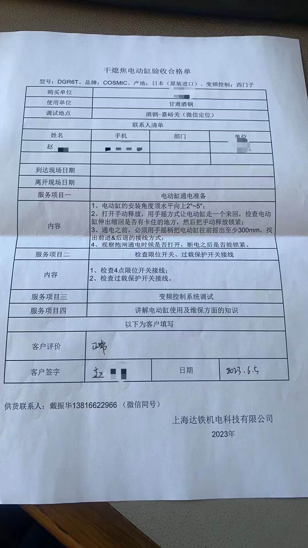 本周,位于甘肃嘉峪关的酒钢干熄焦项目,装入装置电动缸完成了调试工作!